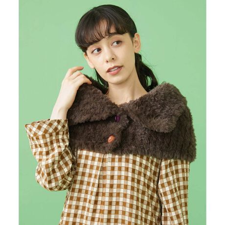 ふんわりと暖かく滑らかなフェイクファーが季節感たっぷりのデザインスヌードです。ホコモモラらしさのあるカラフルなくるみボタンにキラリン刺繍を施したワンポイントのある大人可愛いひと品。幅広で存在感があり、ボタンを全て留めて首元にたるませるだけでなくショルダーをすっぽりと覆ったり、ボタンを外して襟の様にしたりと様々な着こなしを楽しんでいただけます。秋冬のコーディネートにニュアンスのあるアクセントをプラスしてくれます。