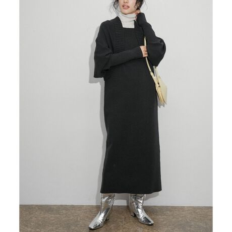 【《環境配慮・アップデートアイテム》着るだけでおしゃれに様見え。レイヤードデザインが映える、やわらかな肌触りが心地よいニットワンピース】