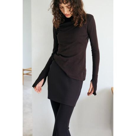 M_(エムアンダーバー)【M_ BACK SLIIT THIN KNIT】程よい透け感のタートルネックのセーター。コットン原料にオーガニックコットンを使用した繊細な糸で編み上げました。飽きの来ないシンプルなデザインに、後ろ襟、後ろ裾、袖口に入ったスリットがポイントです。■透け感:なし■光沢感:なし■伸縮性:あり■裏地:なし