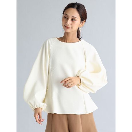 トレンドのボリュームスリーブにジャガード生地をプラスしたプルオーバー。