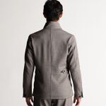 シャープなシルエットは踏襲しつつ、中に少し地厚なインナーも着れる様に肩回り〜アームホールバランスをゆとり感ある設定にしています。