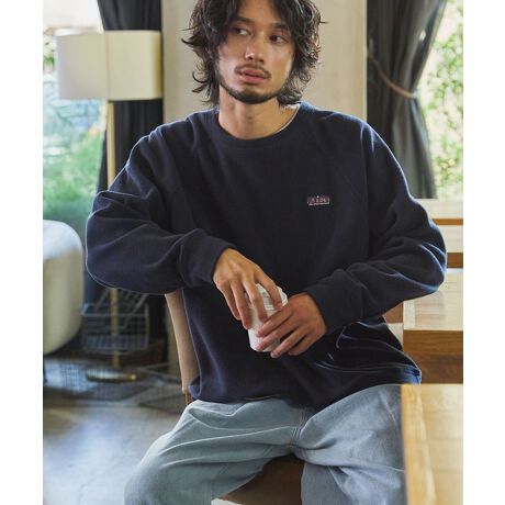 胸元にブランドピスネームを施しており、シンプルながらも洗練された印象を感じさせます。軽量のフリース生地を用いているためラフな着心地。サイズにゆとりを持たせているため程よいドレープが生まれ、コーディネートにリラックス感を与えます。