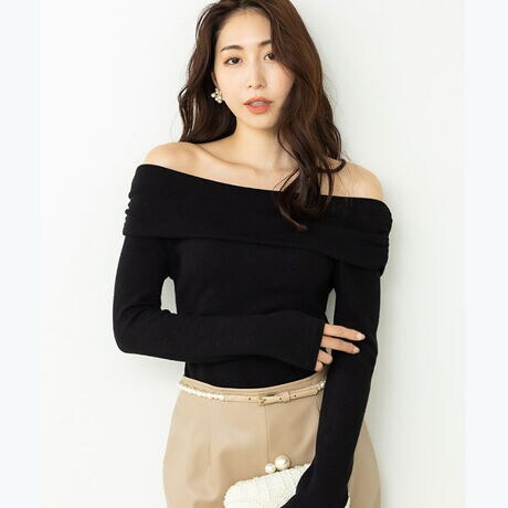 デイリーに使える、女度高めなオフショルニット。
