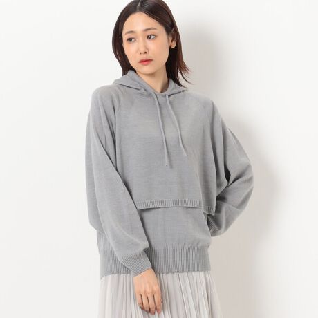 ミドルゲージのショート丈パーカトップスと、ベストとしても着回せるVネックインナーとのアンサンブルニットです。