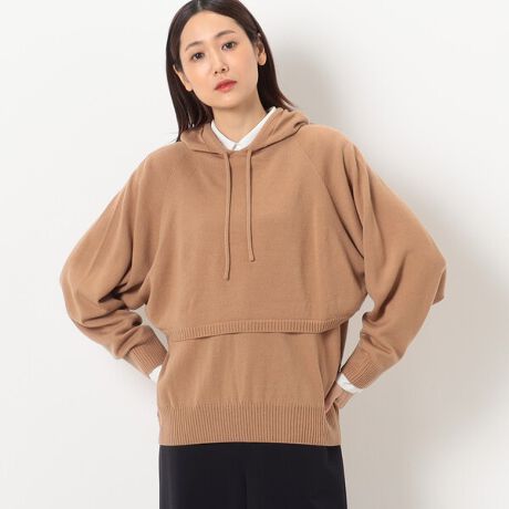 ミドルゲージのショート丈パーカトップスと、ベストとしても着回せるVネックインナーとのアンサンブルニットです。