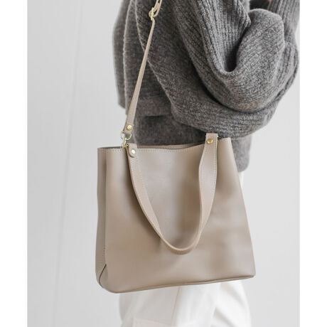 柔らかで肉厚のフェイクレザーにステッチをあしらった洗練された雰囲気のショルダーバッグ。