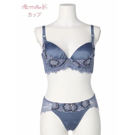 【脇高】マットサテン刺繍ブラ&ショーツ[モールドカップ]