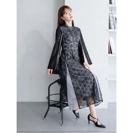 ●レースとチュールの透け素材に光沢のあるサテン素材を裏地として合わせる事で、透けを防止しながら上品な艶感を演出。