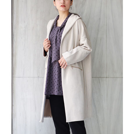 フードデザインのきれいめな印象のロングアウター。
