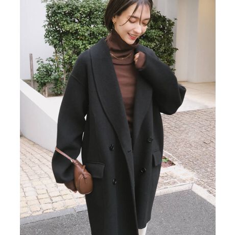 女性らしいショールカラーをダブルでかっちりと仕上げた、ハンサムで上品な印象にみせてくれる1枚。