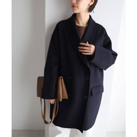 女性らしいショールカラーをダブルでかっちりと仕上げた、ハンサムで上品な印象にみせてくれる1枚。
