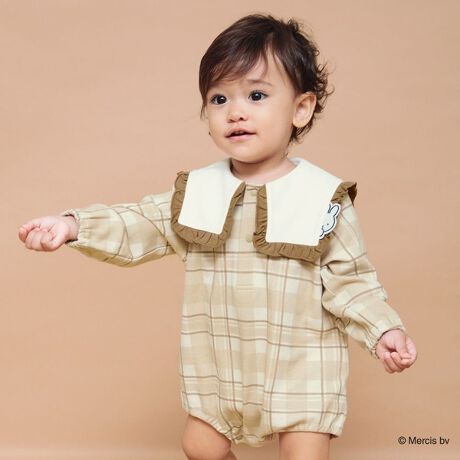 おしり部分のミッフィーモチーフがポイントの長袖カバーオールは