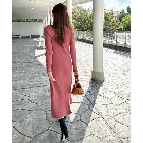 体にフィットする柔らかい素材が着心地よく、上品なシルエットが女性らしさを引き立ててくれる一枚です。