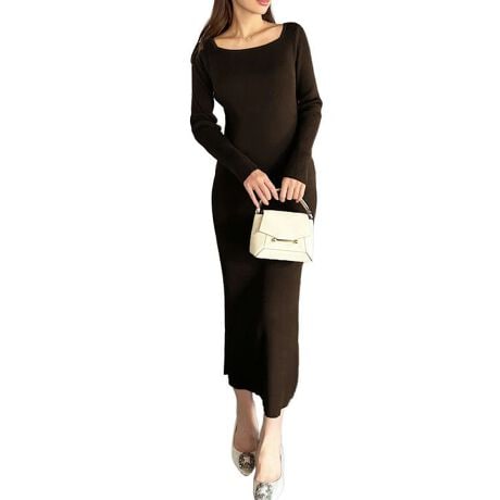 体にフィットする柔らかい素材が着心地よく、上品なシルエットが女性らしさを引き立ててくれる一枚です。