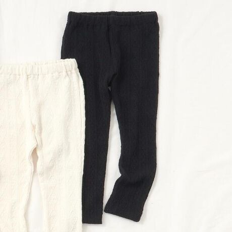 apres les cours(アプレレクール)のスパッツ・レギンス「ケーブルジャガードレギンス」は、足元からおしゃれになれるデザイン。おようふくとのスタイリングも楽しんで。