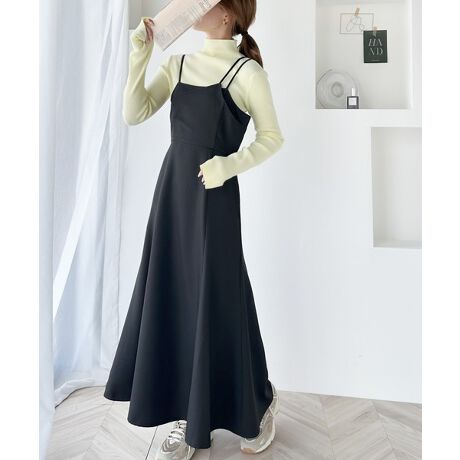 スタイリングの鮮度が高まる大人レディなキャミワンピ。3ストラップレイヤード風キャミワンピース
