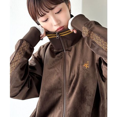 大人の旬スタイル!胸刺繍ベロアトラックジャケット