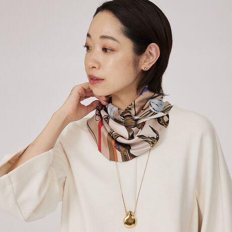 細長い形状なので、スクエア状のスカーフに比べ折りたたむ手間がなく、巻きやすいアイテム。