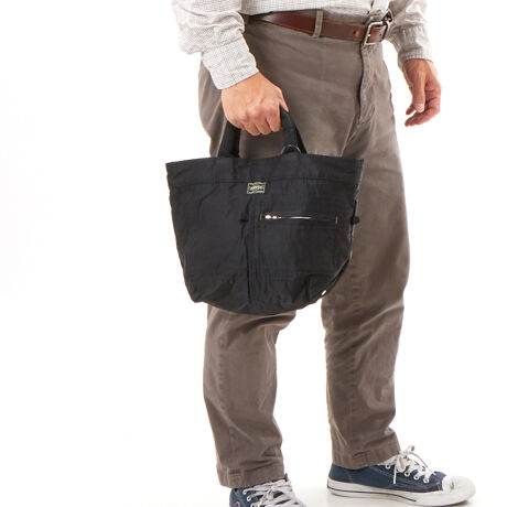 美しく光沢のあるナイロンコットンツイルを採用し、1940〜50年代頃のアメリカのツールバッグやワークエプロンをモチーフにしたシリーズです。上品なミリタリーテイストの生地を採用することで、ワークアイテムが持つ印象と素材にギャップを持たせています。