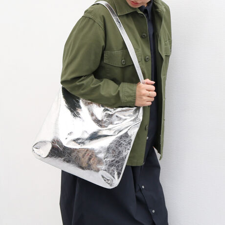 クラッシュ感のあるメタリック合皮を使った2wayショルダー。
