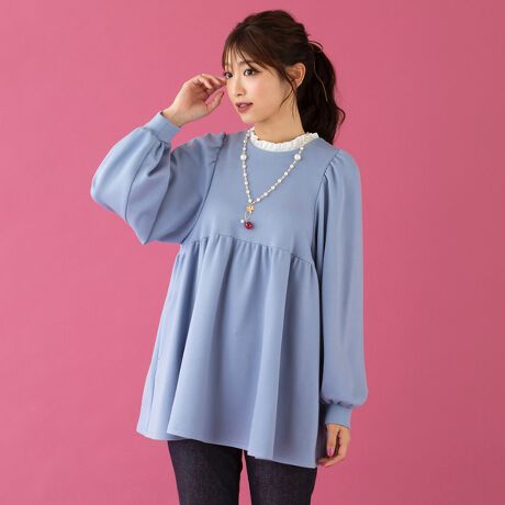 取外し可能なフリルの襟と裾を切り替えた愛らしいデザインでシンプルなのに可愛いスタイリングが楽しめます。