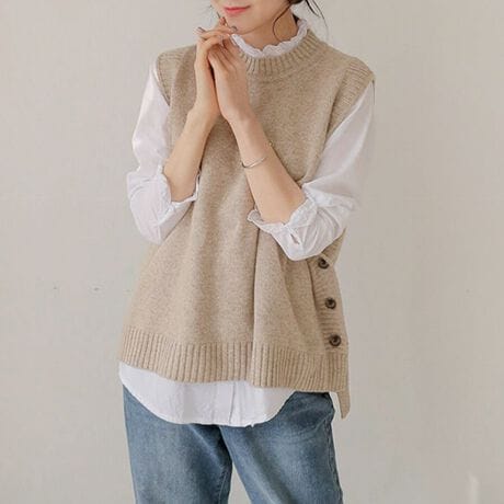 ラウンドネックサイドボタンベスト