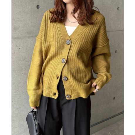 リブ編み ボックスシルエット 長袖 ニットカーディガン