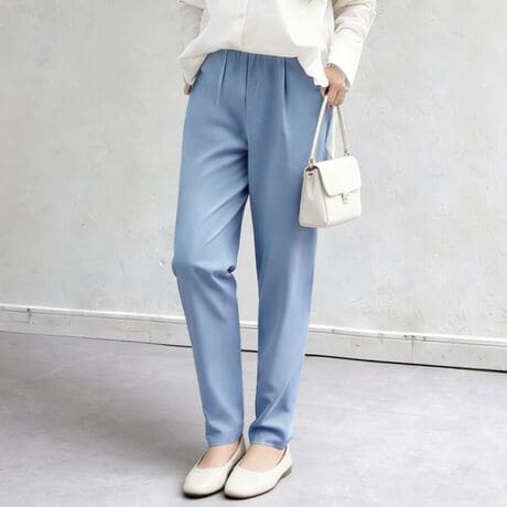 裾に向かってテーパードさせた華奢で女性らしいラインに、ウエストゴムで自然なラフさが表現され、 すっきりとしたコンパクトなパンツスタイルを叶えます。