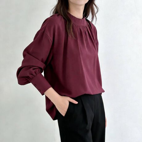 バルーン袖スタンドカラーブラウス
