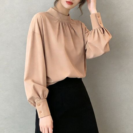 バルーン袖スタンドカラーブラウス