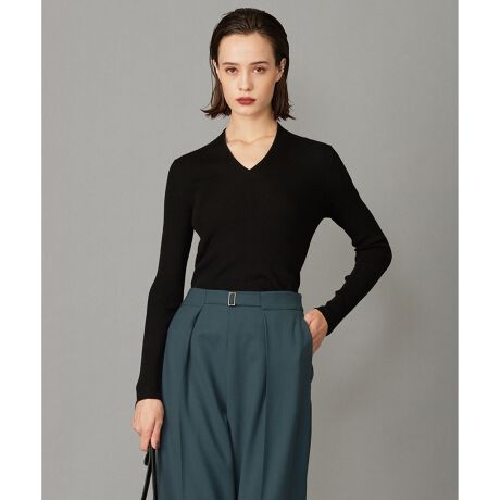 シャープなVネックで女性の美しさを惹きたてる、きれい目リブプルオーバー