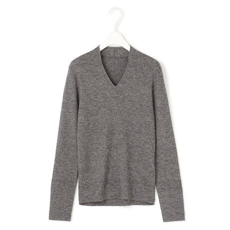 ■デザインICB定番のVネックリブニットプルオーバー。首に沿った程よい開きで首回りをすっきりと上品に見せてくれます。ラインを拾いすぎないシルエットで、ぴったり目なハイゲージニットが苦手な方にもおススメです。一枚ではもちろん、ジャケットやアウターのインナーとしても重宝する着回し力抜群のアイテムです。