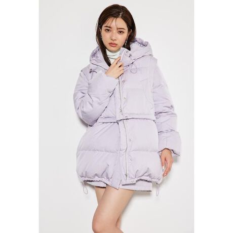 【1着で多様な着こなしを楽しめるダウンジャケット】【Design】1着で多様な着こなしを楽しめるダウンジャケット。1:そのままミディー丈のダウンコートとしての着方の際には、裾のドローストリング部分を絞ると、ぽふっとしたコクーンシルエットに。2:ウエストあたりのファスナーを外すとショート丈のダウンジャケットに。量感のあるボトムス等とも相性良くご着用頂けます。3:袖を取るとトレンドのベスト型のジャケットに。ショートタイプとミディータイプの2パターンでお楽しみ頂けます。程よい艶感のある表地は、上品さが有りつつも多様なお洋服に合わせ易い表地で、非常に軽くて暖かい着心地となっております。全てオリジナルで染めたriendaならではの絶妙なカラー展開もお勧めです。中綿H/WS-PT(110GA731-0230)とのSETUP企画で、一緒に着用すると簡単に今っぽいスタイリングにアップデートしてくれます。【Color】ニュアンスカラーが上品かつ今時感溢れるL/PUR、絶妙な色合いが女性らしくもカジュアルにも着易いL/GRN、モードかつベーシックでどんなスタイリングにも馴染み易いBLK、ツイードの独特な風合いが価値観を高めてくれる柄WHT(110GA630-1220)の展開です。