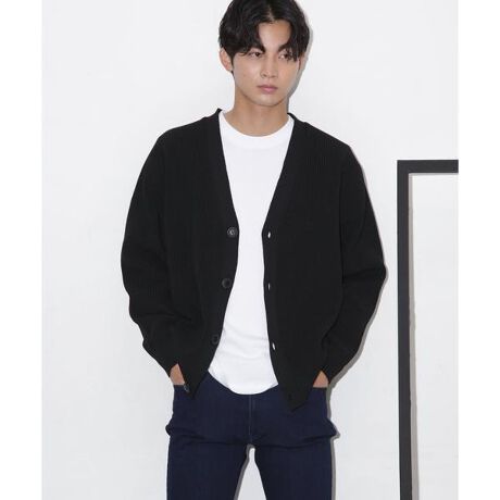 秋冬のレイヤードスタイルに欠かせないVネックリブカーディガン。