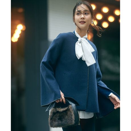 カジュアルにも上品スタイルにも合う、2WAYでの着こなしが楽しめるアウター
