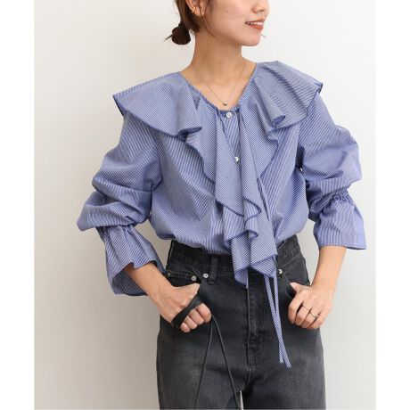 存在感のあるフリルカラーがポイントのブラウス。