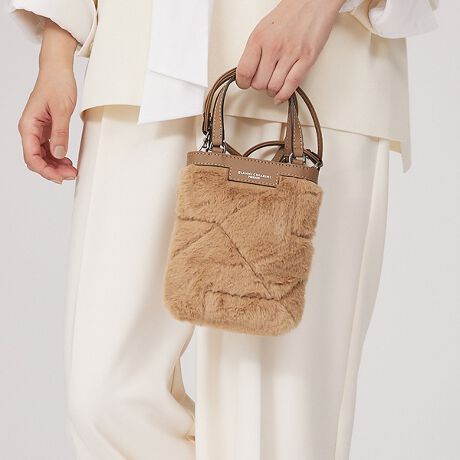 柔らかいエコファーにキルティングを施したアクセサリー感覚で使えるバッグ。