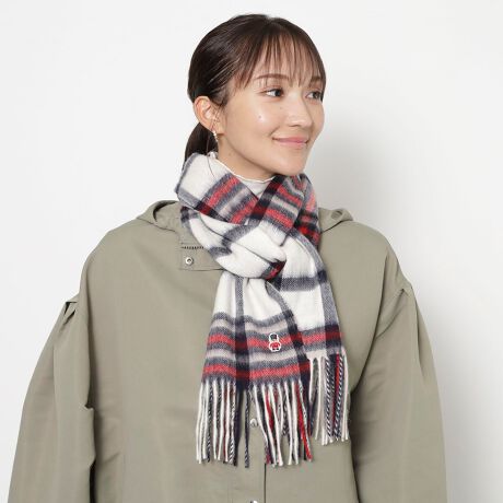 【WEB限定】ウール100%紡毛厚手マフラー 30×180cm バッキンガムベア チェック