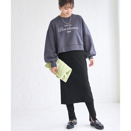 ・スカートもパンツもリブ仕立てにより細身のライン。
