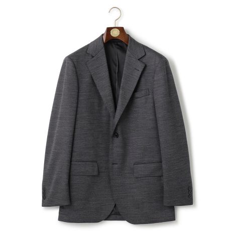 ■素材上質な尾州モックロディジャージを使用。1/60ウール 75D/150D ポリエステル細番3種を高密度に交編で織り上げています。程よい光沢感のあるデカタイズ仕上げとポリエステル交編によるハリ感、キックバックの良さが特徴です。また夏以外通期で使用できるベーシックな素材になります。■仕様ジャージー素材の難点である「カーリング」を考慮しフロントには胸ダーツを取らない仕様に。そうすることでフロントの反り返りを軽減しジャージー素材でもラフにならないエレガントな佇まいをキープできるよう設計したジャージー特別仕様を採用。■コーディネートインナーにはFLEXYARN タートルネックとコーディネートするのがおすすめ。働き方が多様になったいま、ON/OFFどちらでも着用できるこのセットアップは大人のドレスカジュアルスタイルには必須です。