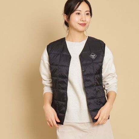 軽くて暖かく着回しやすいデザインが特徴のダウンベスト。