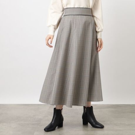 高めのウエストベルト切り替えがクラシカルなスカート。