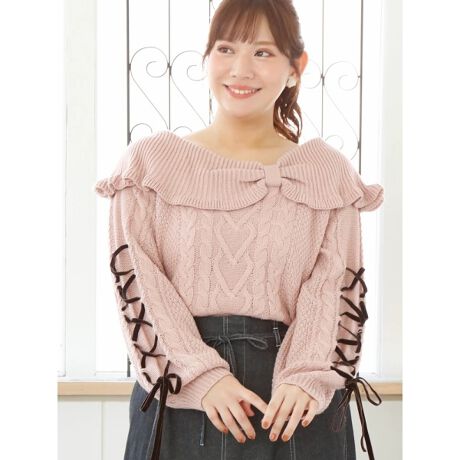 編み上げリボンオフショルニット