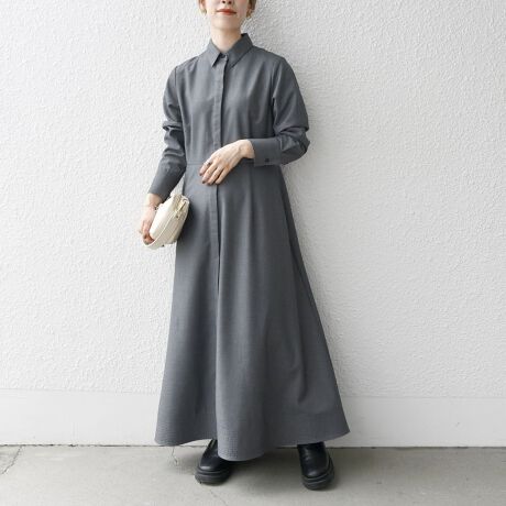 ウエストシェイプされたシルエットが女性らしい、マキシ丈のシャツワンピース。