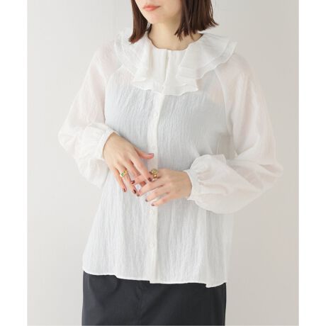 ふんわりボリューム感のあるラッフルカラーが目を惹く、大人可愛いブラウス。