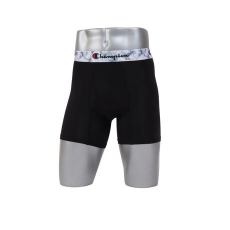 優れた吸汗速乾機能と伸縮性を兼ね備えた「DOUBLE DRYR(ダブルドライ)」ストレッチジャージーを使用したボクサーブリーフです。メッシュ構造素材による高い通気性と心地良いフィット感に加え、しわになりにくく、「C ODORLESSR(シーオドレス)」加工による抗菌防臭機能も備えています。3D POUCH by COMFORT FLEX FITR(スリーディー ポーチ バイ コンフォート フレックス フィット)による前立ての立体設計ポーチ構造による抜群の安定感は、日常使いだけでなくスポーツシーンでも活躍するはき心地です。Champion(チャンピオン)ロゴを全周に入れたウエストゴムは、インクジェットプリントによる繊細でクリアな柄がポイント。カモフラージュ柄をドットで表現したブラックと、タイダイ風のブラック×グレーの2色展開。前開き仕様。