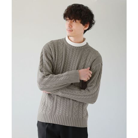2023年モデルからサイジングをリニューアルしてシルエットを変更しました。SPUオリジナルケーブルニットの従来モデルは細身でフィット感の高いシルエットだったため、近年人気のゆったりシルエットのボトムスに合わせにくいという難点がありました。