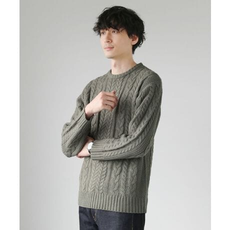 セミワイドシルエットケーブル編みクルーネックニット