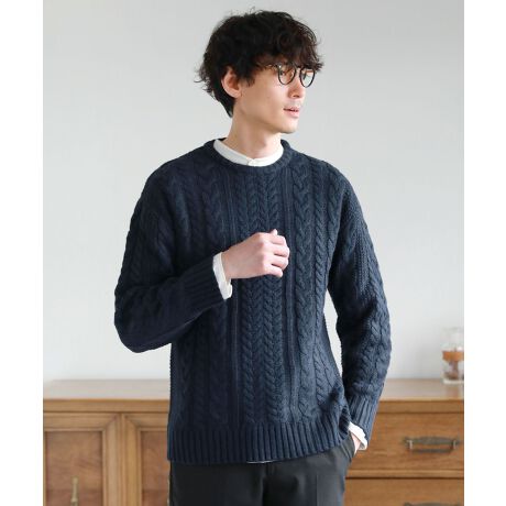 セミワイドシルエットケーブル編みクルーネックニット