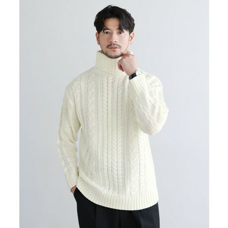 セミワイドシルエットケーブル編みタートルネックニット